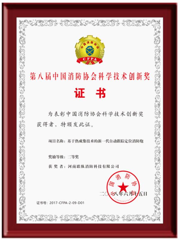 河南聯(lián)縱消防科技有限公司位于鄭州市高新區(qū)電子電器產(chǎn)業(yè)園,擁有專家團(tuán)隊(duì)和標(biāo)準(zhǔn)化工業(yè)廠房和實(shí)驗(yàn)場(chǎng),是一家以大空間智能消防水炮為主導(dǎo)的集科研、開發(fā)、生產(chǎn)、銷售、服務(wù)于一體的高科技消防設(shè)備制造企業(yè)。 公司以“極致產(chǎn)品安天下”為宗旨,針對(duì)市場(chǎng)上普通消防水炮精準(zhǔn)度差、易誤噴、不能實(shí)時(shí)追蹤動(dòng)態(tài)火源、適用場(chǎng)所受限等缺陷,歷時(shí)6年,成功研發(fā)出了第II代自動(dòng)跟蹤定位射流滅火裝置系列產(chǎn)品。公司已通過了IS09001:208、IS014001:2004、OHSAS18001:2007、GB/T29490-2013等體系認(rèn)證,獲得專利授權(quán)三十多項(xiàng),取得國家級(jí)高新技術(shù)企業(yè)、消防行業(yè)誠信示范單位、消防科技創(chuàng)新企業(yè)、第八屆中國消防協(xié)會(huì)科學(xué)技術(shù)創(chuàng)新獎(jiǎng),產(chǎn)品通過國家消防裝備質(zhì)量監(jiān)督檢驗(yàn)中心檢驗(yàn),并獲得了公安部消防產(chǎn)品合格評(píng)定中心頒發(fā)的消防產(chǎn)品認(rèn)證證書。 第II代自動(dòng)跟蹤定位射流滅火裝置采用熱成像+捷聯(lián)制導(dǎo)技術(shù),集自動(dòng)報(bào)警、動(dòng)火追蹤、自動(dòng)滅火、視頻監(jiān)控四位一體,具有可靠性高、精準(zhǔn)度好、性能穩(wěn)定、安裝操作方便、智能化程度高、應(yīng)用環(huán)境廣泛等特點(diǎn)。公司產(chǎn)品自上市以來,已經(jīng)有數(shù)萬臺(tái)產(chǎn)品被安裝在了數(shù)千個(gè)工程項(xiàng)目中,先后參加了幾十次國內(nèi)外消防展,贏得了各界人士的一直好評(píng),被央視《我愛發(fā)明》欄目發(fā)現(xiàn)后,央視編導(dǎo)組對(duì)產(chǎn)品性能進(jìn)行了數(shù)十天的實(shí)驗(yàn)和拍攝,先后在以下節(jié)目播出: CCTV-10《我愛發(fā)明》之“烈火哨兵”、CCTV-10《實(shí)驗(yàn)現(xiàn)場(chǎng)》之“滅火試驗(yàn)”、CCTV發(fā)現(xiàn)之旅《品質(zhì)》之“智慧消防 守護(hù)一生”、 CCTV-17新改版《我愛發(fā)明》之“智能水炮”...
